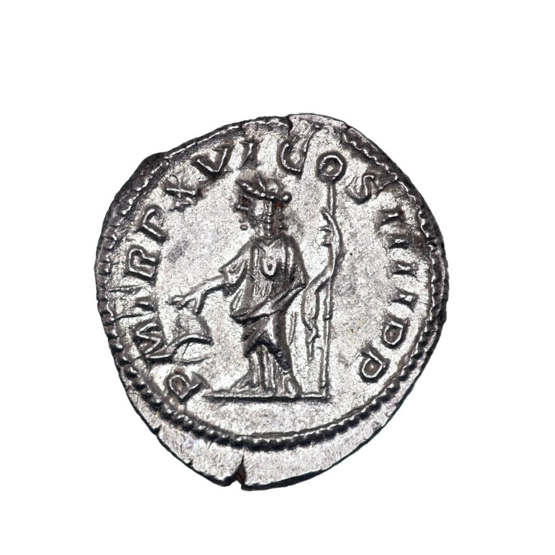 Rev: P M TR P XVI COS IIII P P, Libertas standing left holding pileus & rod.