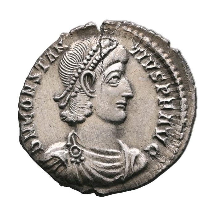 Obv: D N CONSTAN-TIVS P F AVG Pearl-diademed, draped and cuirassed bust of Constantius II to right.