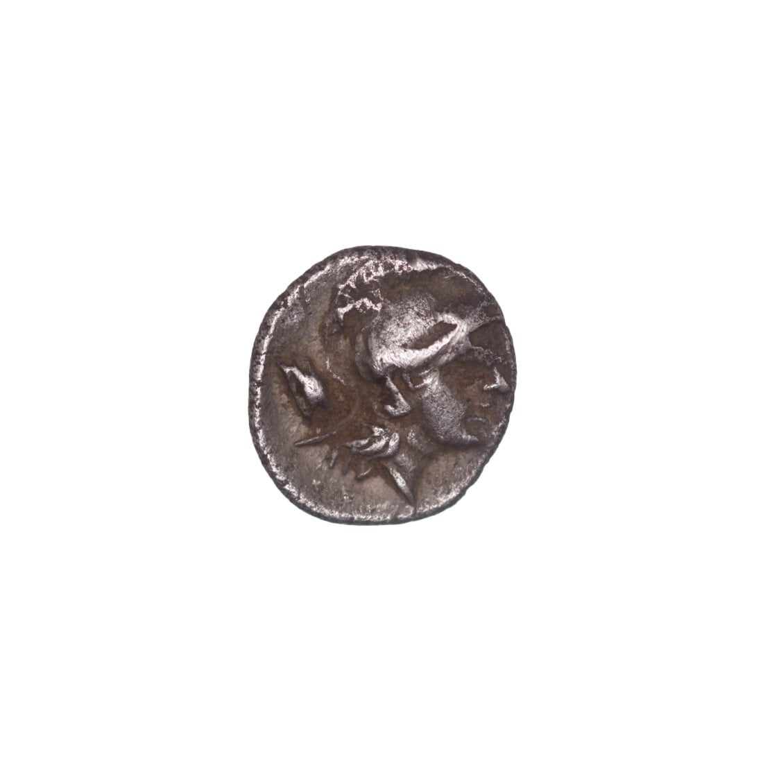 Ancient Greek – Silver Trihemiobol of Selge, Pisidia -Helmeted head of Athena right, spear-head and astragalos behind head.